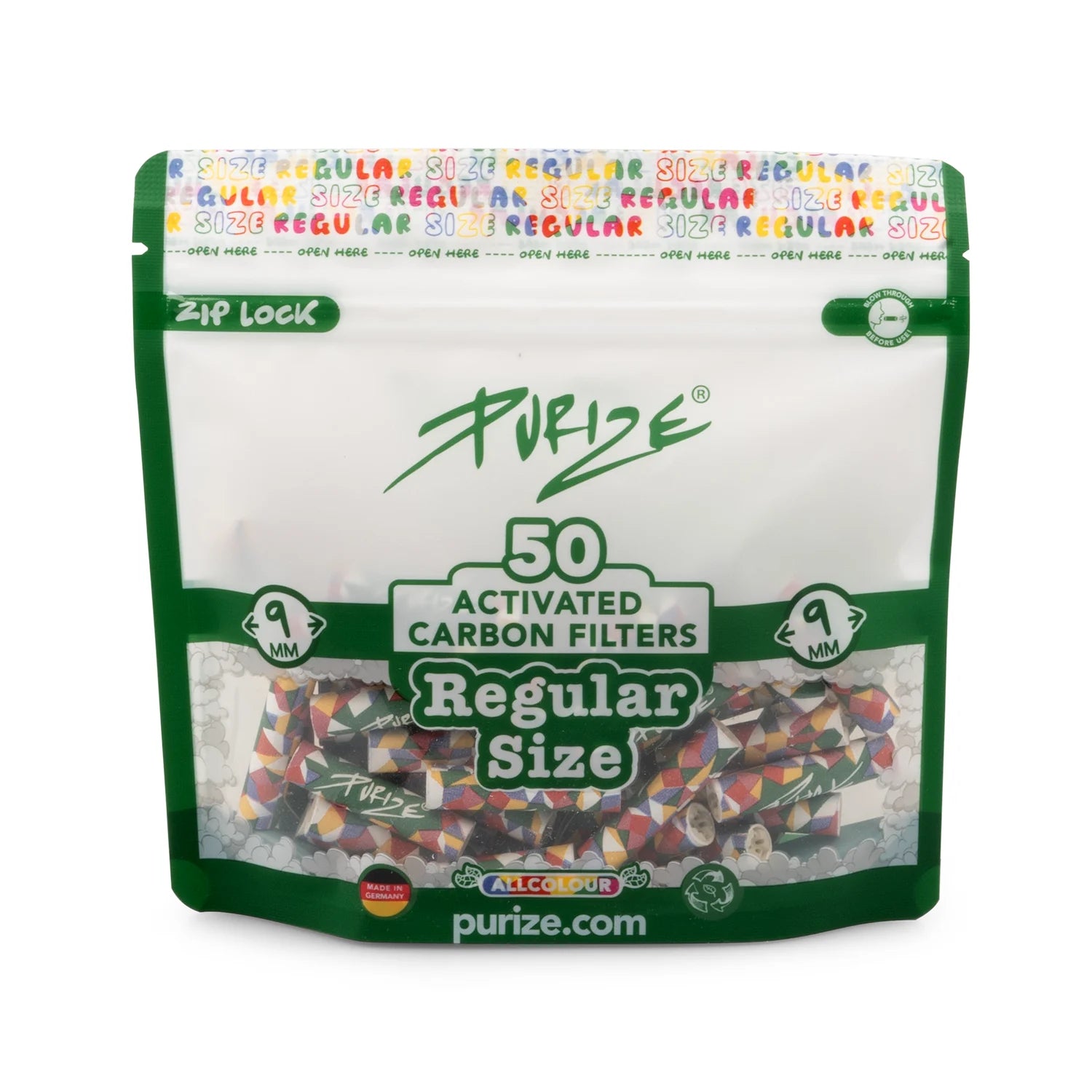 PURIZE® Regular Size – Aktivkohlefilter im 50er Vorratsbeutel