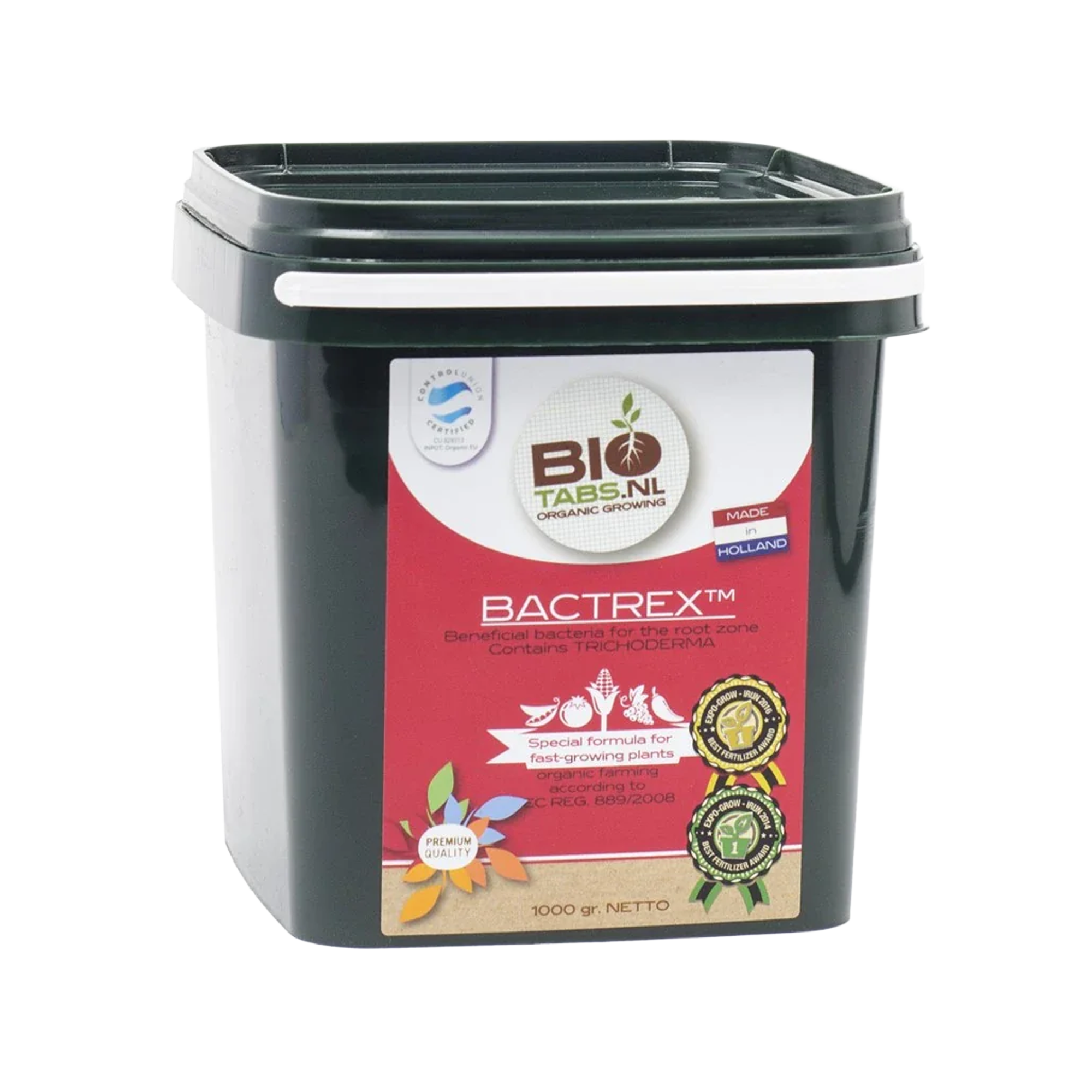 BioTabs Bactrex ist ein organischer Bodenverbesserer in Pulverform, der eine leistungsstarke Mischung aus nützlichen bodenaktiven Mikroorganismen wie Bacillus-Stämmen, Trichoderma-Schimmelpilzen und Huminsäuren enthält. Diese natürliche Kombination aktiviert das Bodenleben, verbessert die Bodenstruktur und unterstützt eine gesunde Entwicklung der Wurzeln sowie eine optimale Nährstoffaufnahme in Erde und Kokos-Substraten.