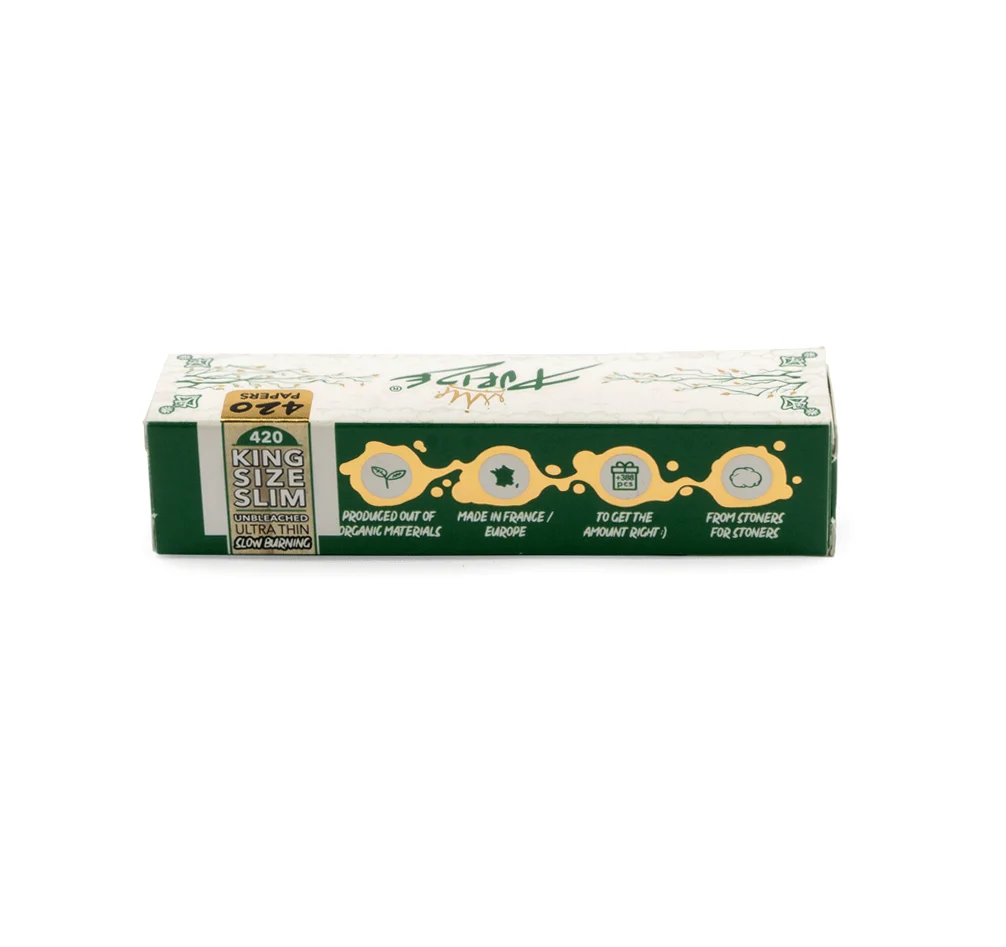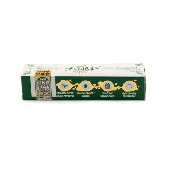 Die PURIZE® King Size Slim Papers im innovativen 420er Booklet stehen für höchsten Rolling-Komfort und kompromisslose Qualität. Wenn Sie ein Paper suchen, das gleichmäßig abbrennt, geschmacksneutral bleibt und aus natürlichen Materialien besteht, ist dieses Produkt die perfekte Wahl.